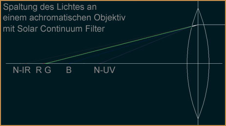 Der Solar Continuum eignet sich besonders für die Sonnenbeobachtung. Im folgenden Text möchte ich die Funktionsweise am APO-chromatischen und am chromatischen System verdeutlichen.