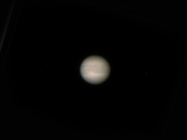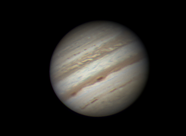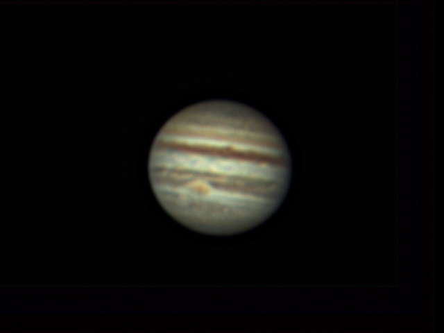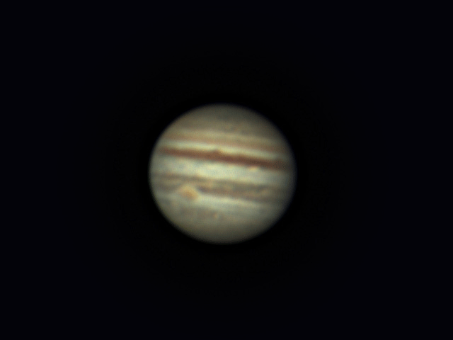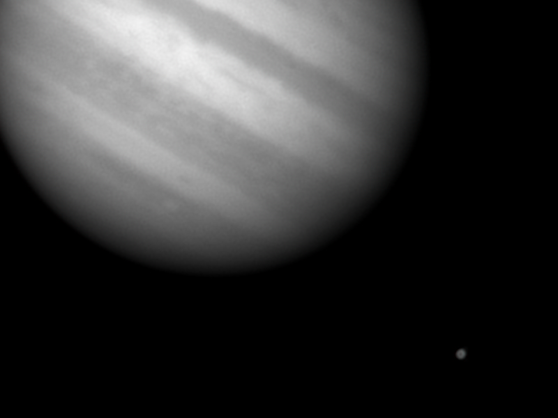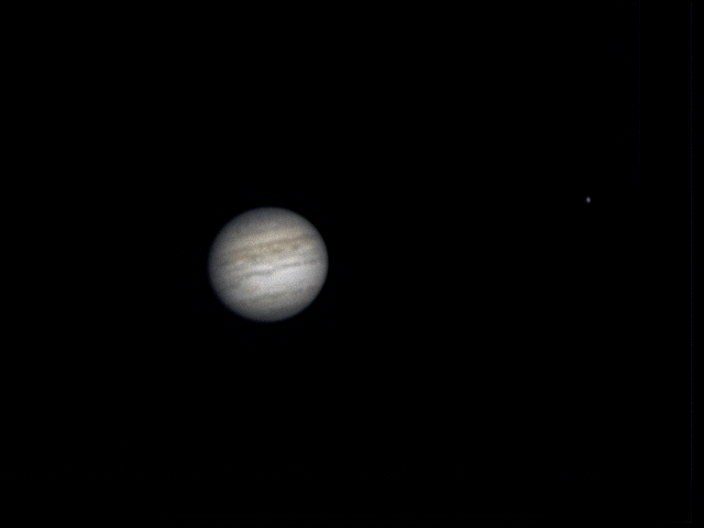 Ich habe eine Aufnahme des R-Kanals nochmal genauer unter die Lupe genommen und mit Giotto auf den Mond Europa zentriert (2x Superres.) und anschließend leicht nachgeschärft. Es könnte sein, dass hier bisschen was zu sehen ist an Detail, aber GANZ sicher bin ich mir auch nicht (unteres Bild).